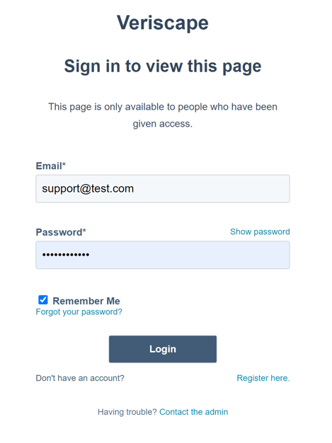 To sighn in to Veriscapes customer portal please visit the: support.veriscape.com Page. This will then redirect you to a sign in page as shown below.
