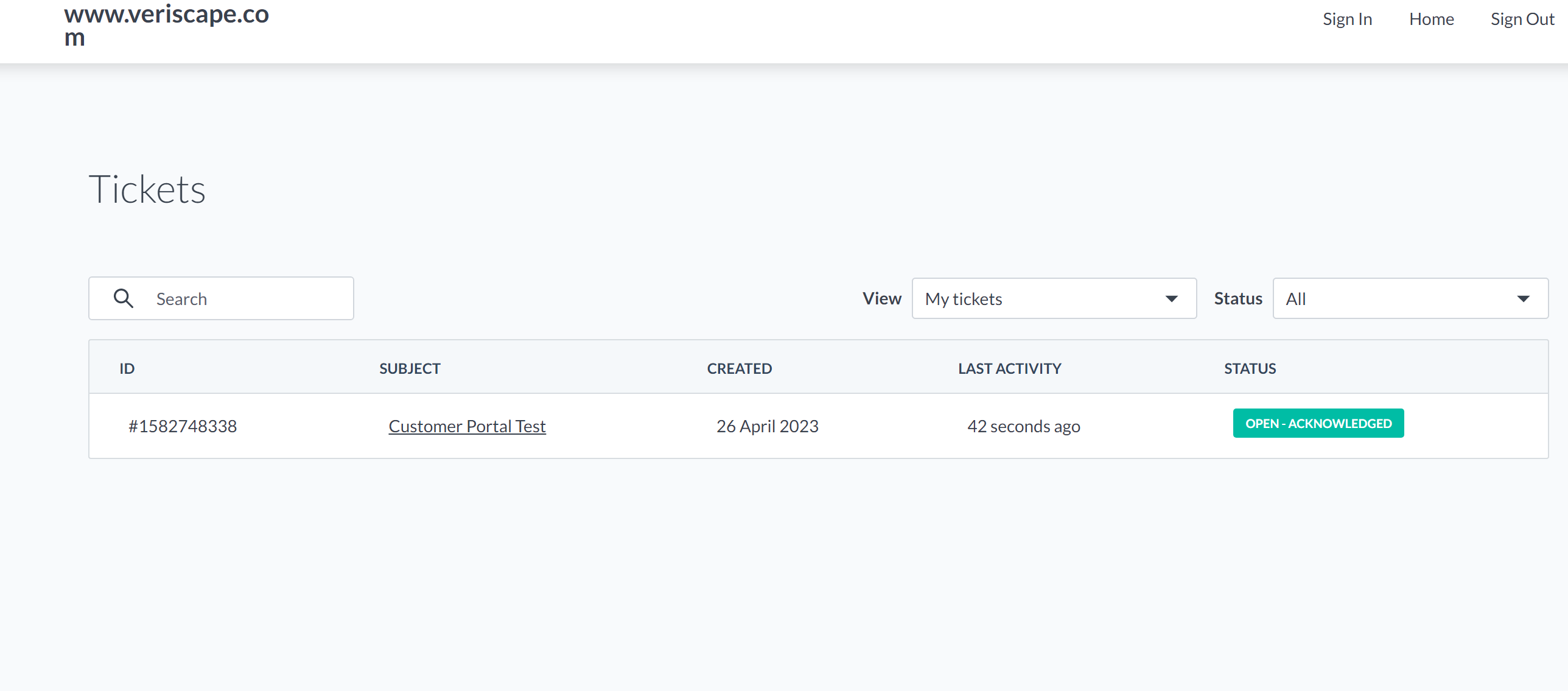 The first page you'll see will contain all the tickets that are associated to your account (your email address). You can change this to show all tickets associated with your company, or filter by current status.